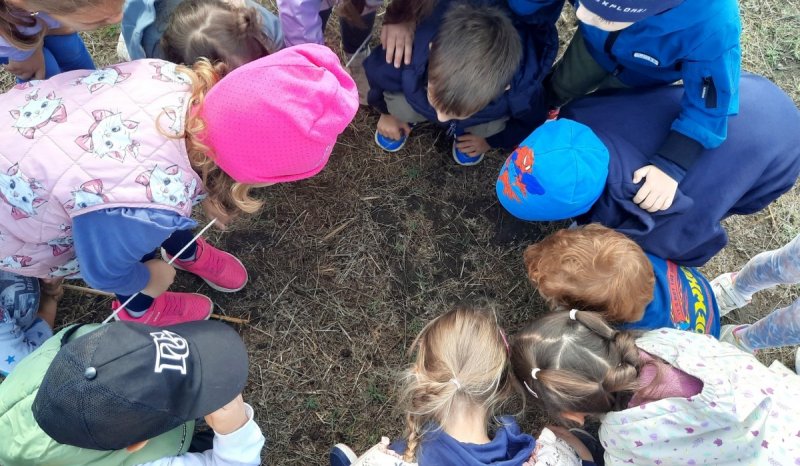 Közvetlenül a kilátó mellett, testközelből tudták megfigyelni a delelésre vonuló juhnyájat. Alaposan szemügyre vehették azt is, milyen külső jegyekben térnek el egymástól az őshonos cigája és rackajuhok. Közben a juhász munkáját segítő, mudi terelőkutyákat is kíváncsian nézegették. Egy nagyobb gyerekcsapat nagyméretű pókot állt körbe. Mint kiderült, hazánk legnagyobb pókfajának, a szongáriai cselőpóknak egy példányára bukkantak.