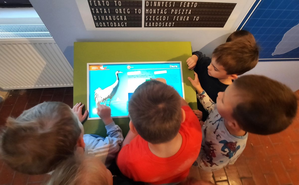 Az élmények gyűjtése a Kardoskúti Madárvonulás Múzeumában folytatódott, ahol a gyerekek örömmel vették birtokba az interaktív bemutató eszközöket és játékos formában ismerkedtek a madarak világával.