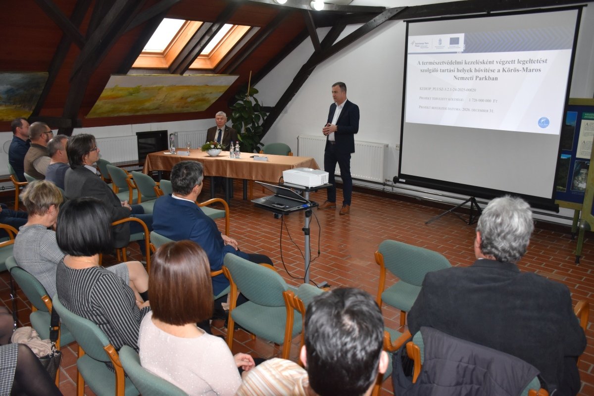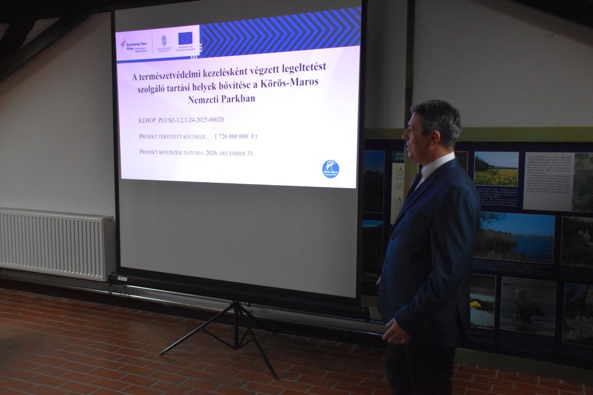 Dr. Rácz András, természetvédelemért felelős államtitkár szólt arról, hogy a KEHOP keretében a hazai tíz nemzeti parkban összesen 60 beruházás valósul meg, melyek összértéke eléri a 42 milliárd forintot. Ennek köszönhetően mintegy 100 ezer hektáron javul a természeti környezet állapota. A projektek kétharmada az élőhelyek rekonstrukcióját szolgálja, de az őshonos állattartáshoz szükséges infrastruktúra fejlesztése is fontos szerepet kap. Annál is inkább, mivel a hazai nemzeti parkok őshonos állatállománya meghaladja a 13 ezer egyedet. Dr. Rácz András kiemelte azt is, hogy a Körös-Maros Nemzeti Parkban a mostanival együtt összesen öt KEHOP_PLUSZ projekt kezdődött el, illetve kezdődik meg a közeljövőben, összesen 4 milliárd forint értékben.